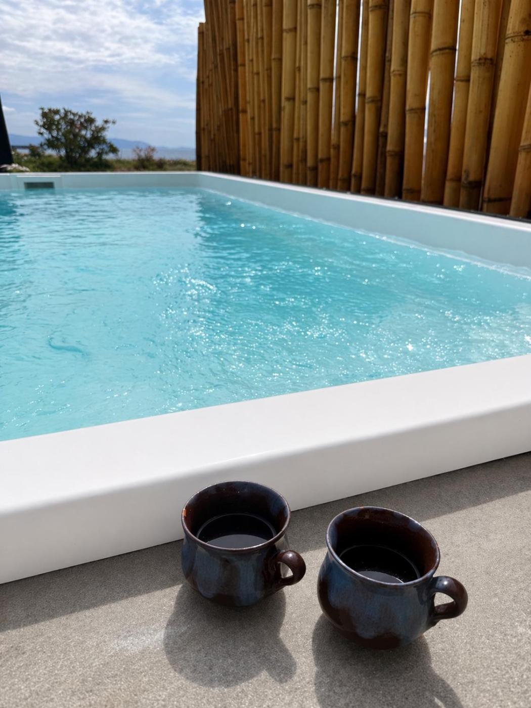 Suite with Private Pool. This suite boasts a pool with a view and a hot tub. Featuring a private entrance, this air-conditioned suite is comprised of 1 living room, 1 separate bedroom and 1 bathroom with a shower and a hairdryer. The suites kitchenette, which features a refrigerator and kitchenware, is available for cooking and storing food. Boasting a terrace with sea views, this suite also offers a tea and coffee maker and a flat-screen TV. The unit offers 1 bed. ;