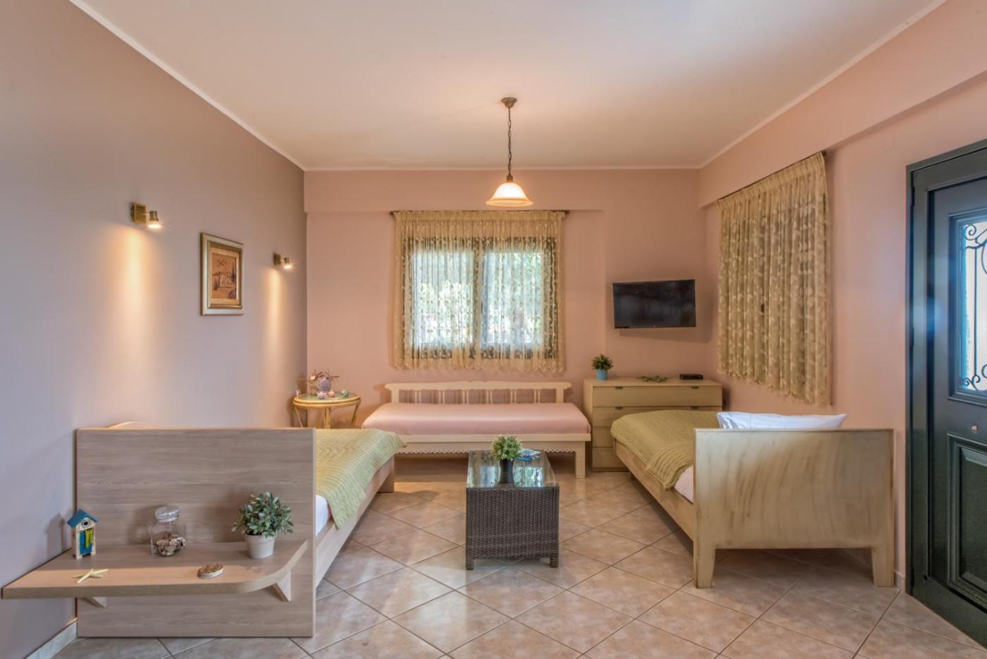 Holiday Home. Just 100 metres of the nearest beach, this house opens to a furnished courtyard with views over the Ionian Sea. It has a kitchen with oven toaster and fridge, and a private bathroom with bath tub. Free WiFi is offered.