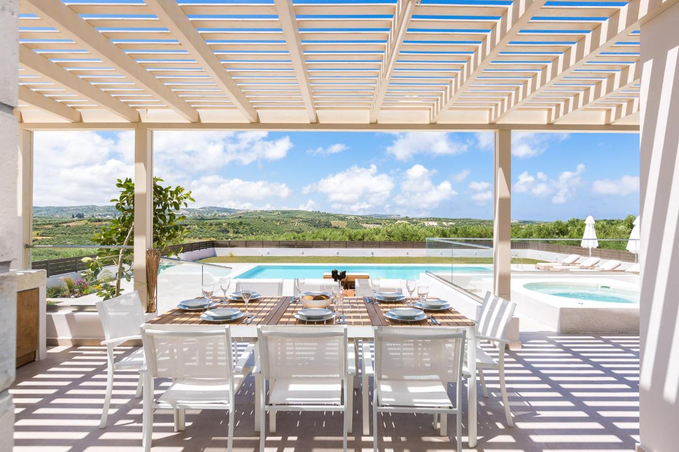 Boasting mountain views, Rosmerta Villa, with Private Pool 65 square meters, BBQ & Heated SpaWhirlpool, By ThinkVilla offers accommodation with a fitness centre and a balcony, around 12 km from Museum of Ancient Eleftherna. This villa features a private pool, a garden, barbecue facilities, free WiFi and free private parking. The accommodation features airport transfers, while a bicycle rental service is also available.