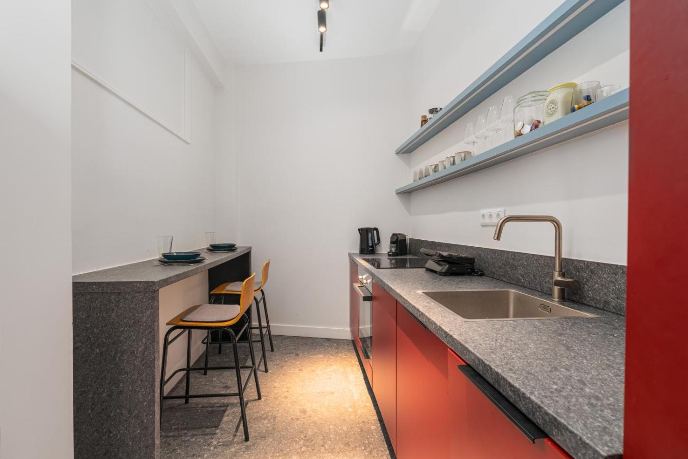 One-Bedroom Apartment. Boasting a private entrance, this air-conditioned apartment features 1 living room, 1 separate bedroom and 1 bathroom with a shower and a hairdryer. Meals can be prepared in the well-fitted kitchen, which has a stovetop, a refrigerator, a dishwasher and kitchenware. The apartment has tiled floors, a seating area with a flat-screen TV, a washing machine, a tea and coffee maker as well as ancourtyard view. The unit has 2 beds.
