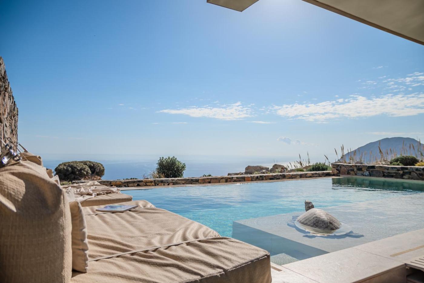 Superior Villa. The pool with a view and fireplace are the special features of this villa. This spacious villa comes with 1 living room, 3 separate bedrooms and 3 bathrooms with a shower and free toiletries. The fully equipped kitchen has a stovetop, a refrigerator, a dishwasher and kitchenware. The air-conditioned villa features a flat-screen TV with satellite channels, a washing machine, a private entrance, soundproof walls as well as sea views. The unit has 6 beds.